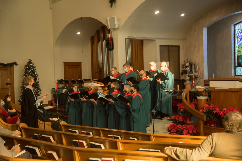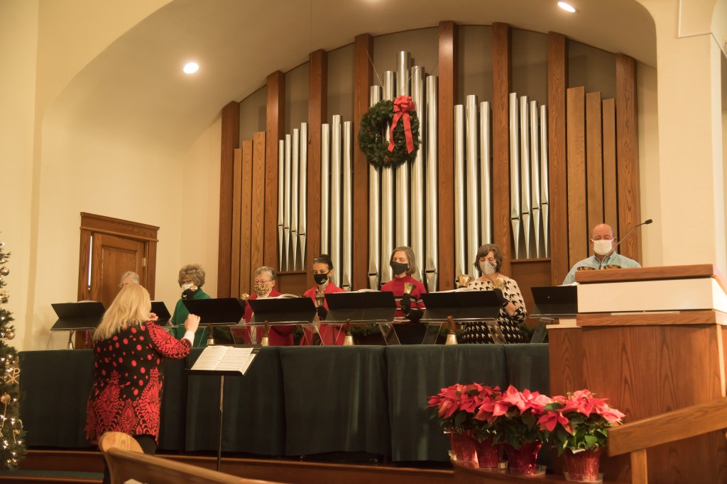 The music in our worship services is typically more traditional. We have a chancel choir and a bell choir, we sing from a hymnal, and within the service you will ussually hear a pipe organ, a piano, and violin.